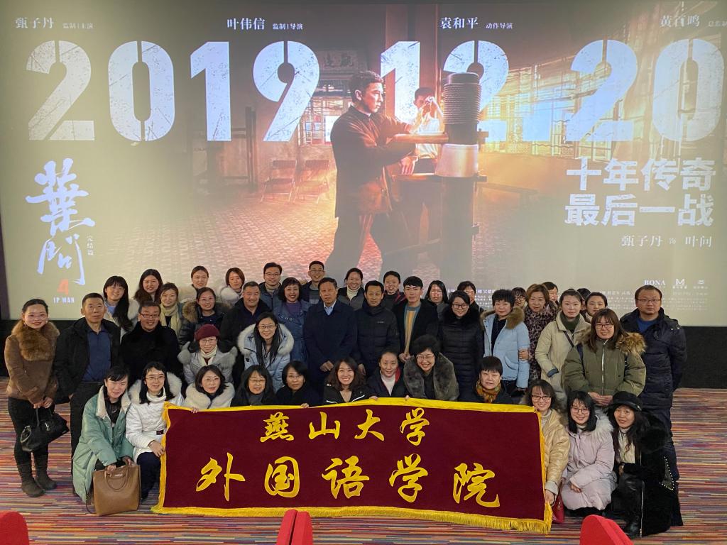 为喜迎元旦,外国语学院工会12月24日下午组织教职工观看了爱国主义影片《叶问4》,70余名教职工参加了活动。