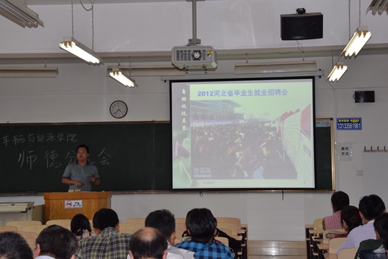 2016年9月27日下午4点,车辆与能源学院工会在东校区第四教学楼314室举办师德先进个人事迹分享会,会议由学院党委书记董国疆主持。