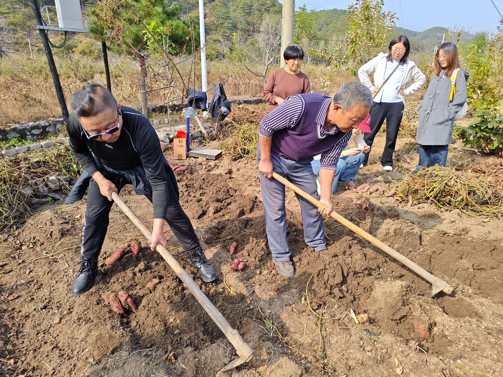畅游美景感受大自然的同时,老师们观看了当地非物质文化遗产拓印艺术表演、感受了当地的民俗文化、抡起镢头体验了翻红薯的感觉......