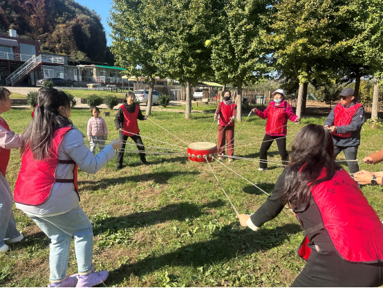 活动当日,参与活动的教职工们准时集合。大家精神饱满,笑语盈盈,在温暖的秋日朝阳下,怀着轻松愉悦的心情统一乘车出发。一路上,车厢内欢声笑语不断,经过约一小时的车程,顺利抵达了本次活动的目的地——蟠桃峪基地。