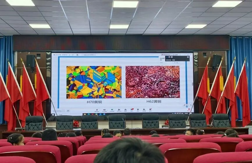 在金相实验室,杨猛老师借助菜刀、铁锅等孩子们熟悉的日常金属物件,巧妙引出金相显微镜“金属侦探”的特殊身份。“大家平时用的铁锅,表面看起来光滑平整,但在这位‘侦探’的眼里,它的内部藏着复杂的晶体结构!”杨老师一边介绍金相显微镜的镜头、载物台等关键部件,一边将马口铁、不锈钢样品放置在载物台上。随着镜头焦距缓缓调整,显示屏上清晰呈现出金属内部错落有致的微观图像,孩子们发出阵阵惊叹。