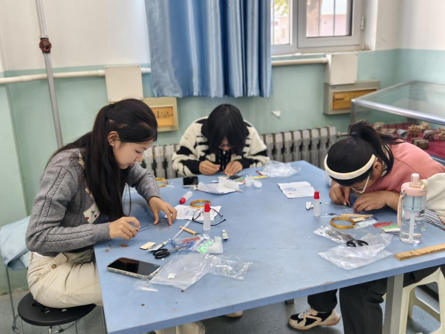 在掐丝珐琅体验课现场,学生从纹样设计、铜丝裁剪到釉料填充、固色定型,每一个环节都饱含专注与耐心。通过亲手完成一件掐丝珐琅书签,学生不仅掌握了非遗工艺的核心技法,更真切触摸到了传统工艺中精益求精的文化内核。