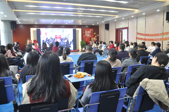 辞旧迎新岁,书香暖人心。1月9日下午,图书馆四层报告厅,红色新年挂布条幅布满墙面,彩带与气球交织出缤纷的节日氛围,图书馆2026新春联欢活动在此温馨启幕。全体馆员齐聚一堂,在精彩的节目与趣味的互动中欢庆新年。现场欢声笑语不断,气氛热烈,洋溢着图书馆喜庆新春的温暖时刻。
