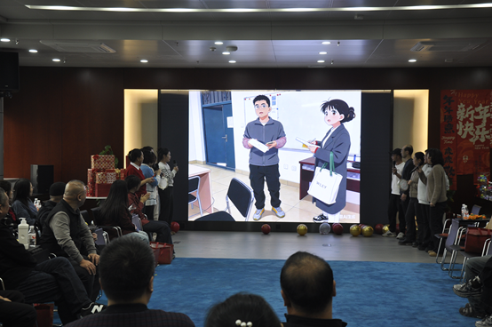 文艺表演环节精彩纷呈。歌曲《稻香》中清甜的歌声让现场暖意融融,《企鹅舞》可爱的动作逗得观众前仰后合。歌曲《十年》的深情婉转、《再回首》的醇厚动人、《人间》的清亮悠扬,让现场时而安静聆听,时而轻声跟唱。诗朗诵《那是我的祖国》,铿锵的语调里满是家国豪情。创意表演秀《资源建设部贺新年》将工作场景融入趣味桥段,通过展现AI制作的视频画面将现场氛围推向高潮。《众人划桨开大船》更唱出了团队同心协力的精神,馆员自发跟着节奏拍手,歌声与掌声汇成一片。