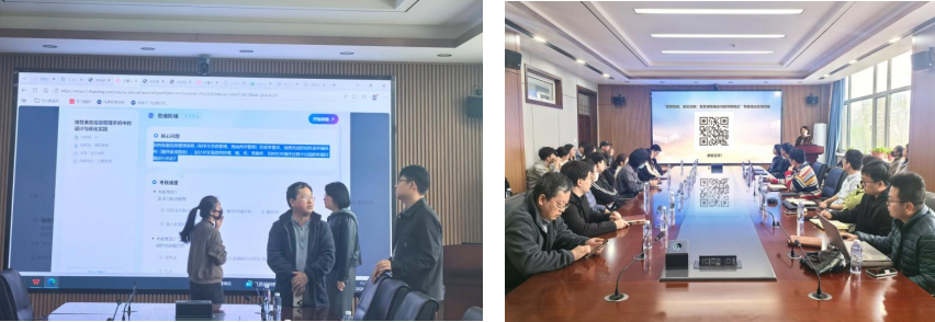在研讨环节,与会教师围绕知识图谱构建、AI助教应用、个性化学习路径设计等问题与主讲人进行了深入交流,现场气氛热烈,讨论踊跃。为全面了解培训效果及教师需求,学院现场发放并回收了培训反馈问卷。统计显示,参训教师对本次培训整体满意度较高;大家普遍认为智慧课程建设对提升教学实效帮助显著,并有超过半数的教师希望学院能继续组织更深层次的实操培训。