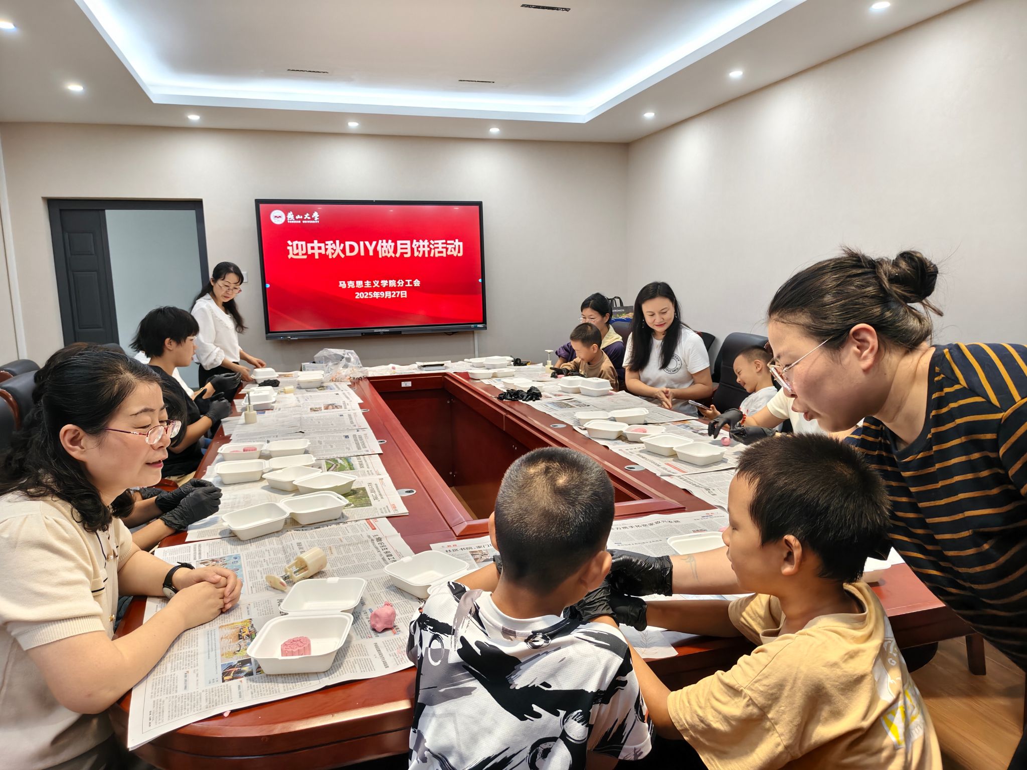 为增进全体老师对中华传统文化的认识和感受,在国庆中秋双节来临之际,2025年9月27日,学院工会举办了“情系中秋月,喜迎国庆节”主题活动。值此国庆中秋佳节,马克思主义学院工会举办了中秋DIY手工制作月饼活动,学院教职工积极报名,踊跃参加。大部分老师参加了亲手制作月饼的活动,学院专门邀请了新茂业喜社蛋糕店的王波经理来学院现场指导,小朋友也跟着妈妈加入到制作队伍中。大家边学习边分享,沉浸在一片欢乐的气氛中。...
